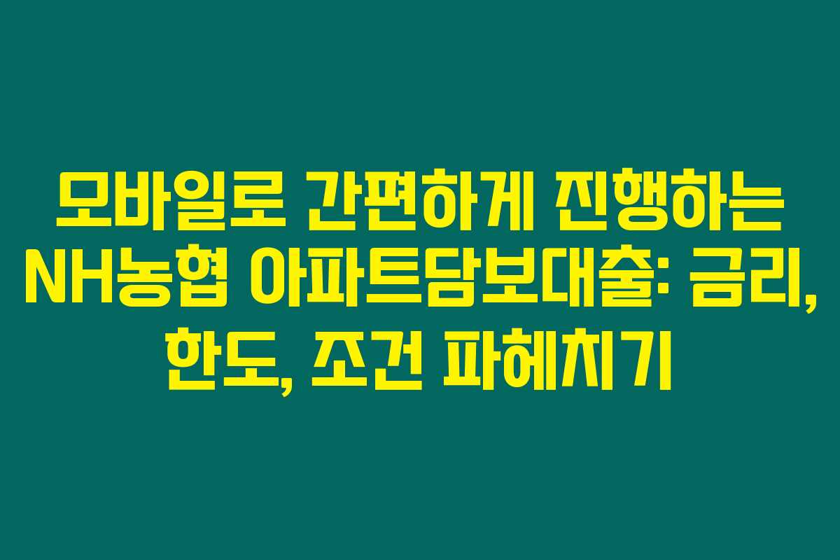 제가 알아본 바로는 NH농협에서 제공하는 모바일 무방문 아파트담보대출이 정말로 많은 사람들에게 편리한 대출 옵션으로 자리 잡고 있습니다. 이 상품은 특히 급하게 자금이 필요한 분들에게 유용한데요, 아래를 읽어보시면 대출 금리, 한도, 그리고 조건에 대해 더욱 자세히 알 수 있을 거예요.