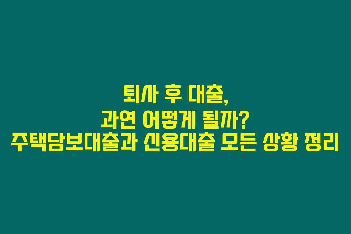1. 퇴사 후 대출의 기본 이해
