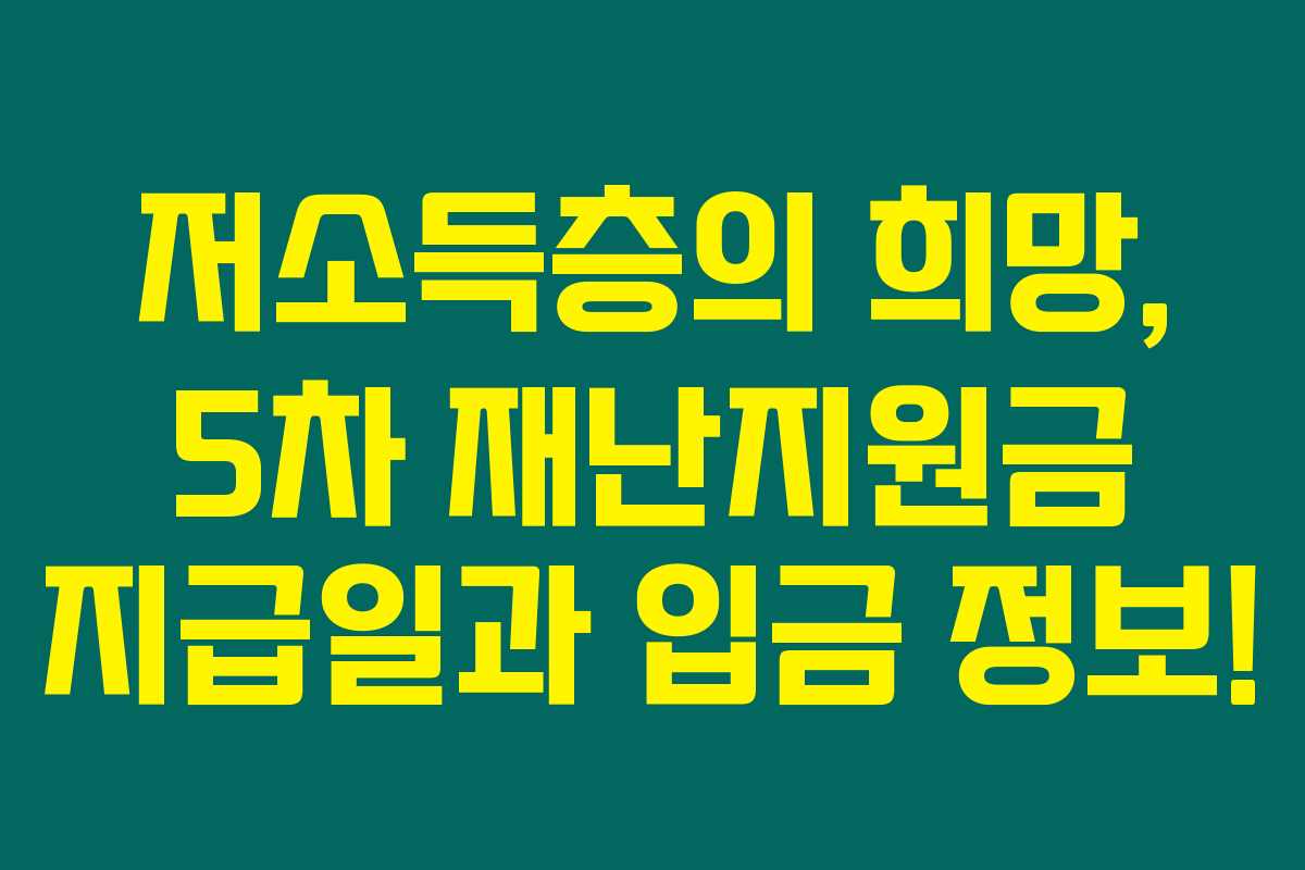 제가 직접 알아본 바로는, 5차 재난지원금에 대한 저소득층 추가 국민지원금이 곧 지급될 예정입니다. 이 포스트에서는 지원금의 지급일과 입금일에 대해 정리해보았으니, 아래를 읽어보시면 많은 도움이 될 거예요.