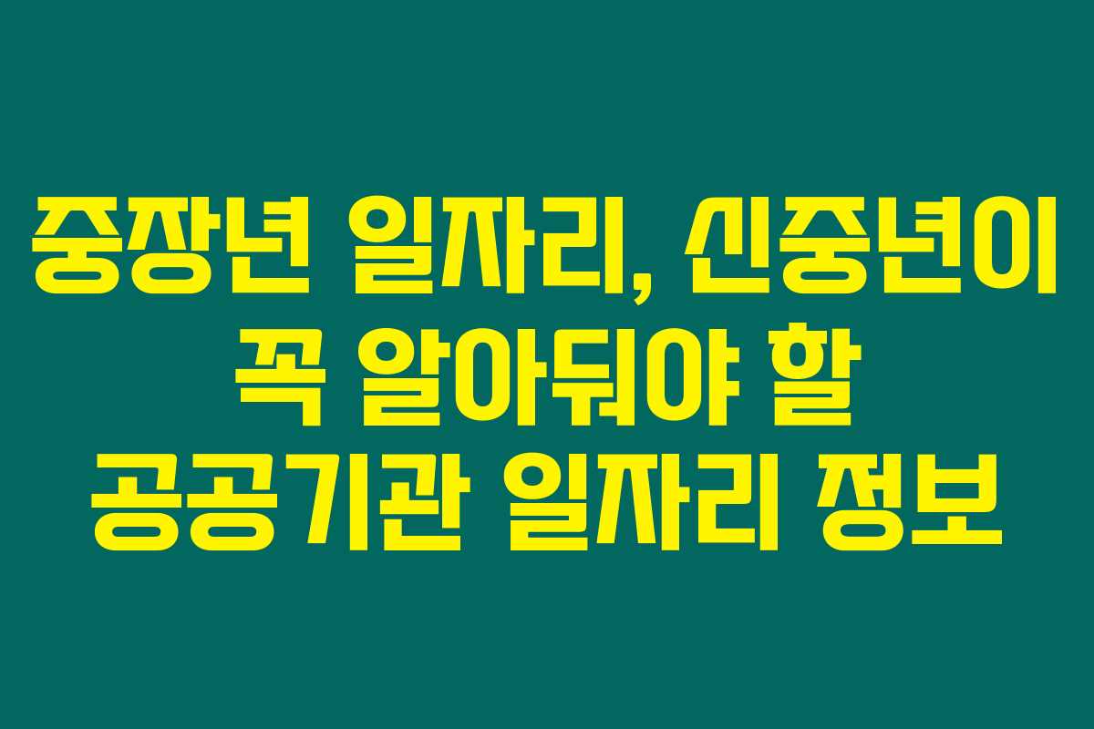 만50세 이상 분들이라면 주목해주세요. 일자리를 찾는 중장년층을 위한 기회가 여러분을 기다리고 있어요. 신중년의 여러분이 특별히 알아야 할 공공기관 일자리에 대한 정보를 담아볼게요. 이 글을 통해 신중년 일자리를 찾는데 도움을 줄 수 있는 유용한 팁을 전해드릴게요.