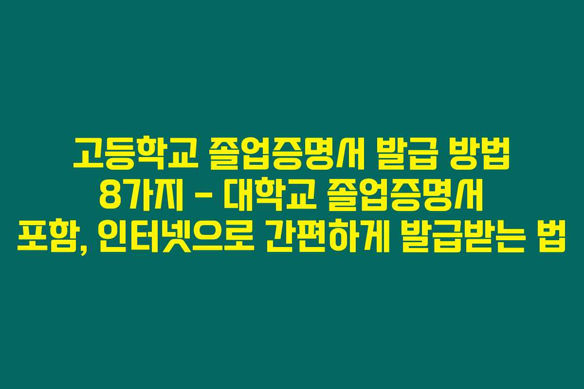 고등학교 졸업증명서를 찾고 계신가요? 고등학교 졸업증명서 발급 방법에 대한 모든 정보를 정리해드릴게요. 고등학교 졸업증명서는 대학교 진학 등 다양한 목적으로 필요할 수 있어요. 특히 대학교 또한 동일한 방법으로 졸업증명서를 발급받을 수 있으니 아래 내용을 잘 읽어보세요!