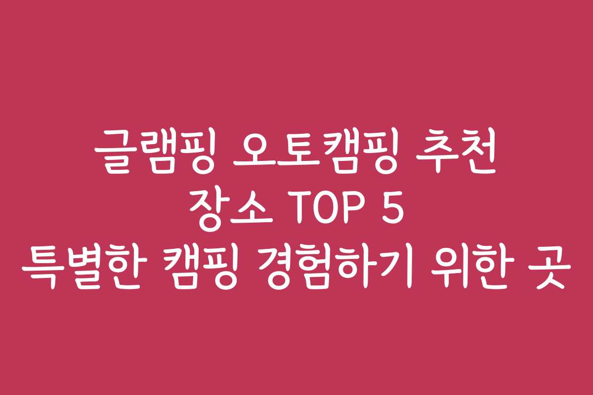 글램핑 오토캠핑 추천 장소 TOP 5 특별한 캠핑 경험하기 위한 곳
