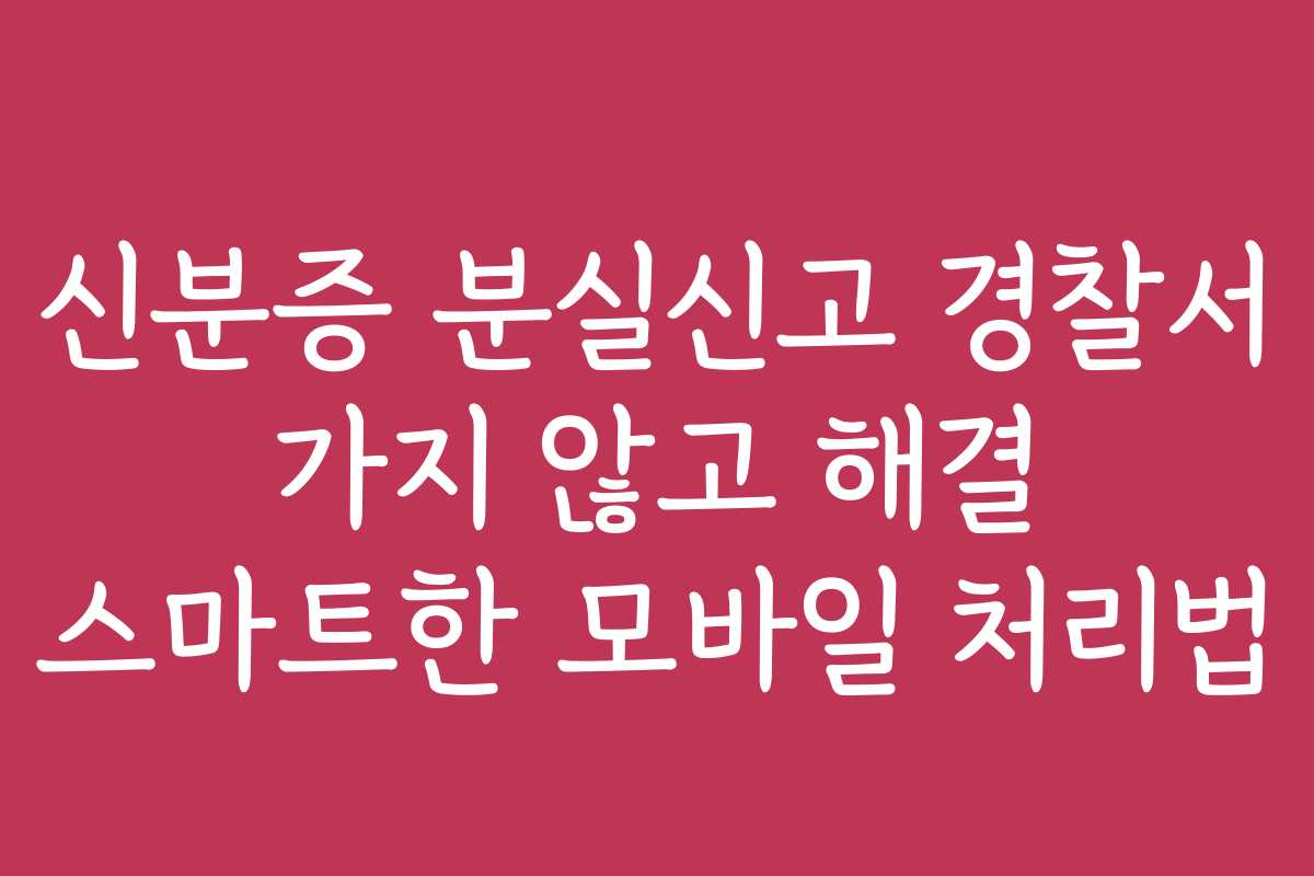 핵심 키워드: 신분증 분실, 모바일 신고, 경찰서 방문, 간편 처치, 정부24, 민원24, 개인정보 보호, 신고 방법, 스마트폰 애플리케이션, 시간 절약, 사용자 후기
