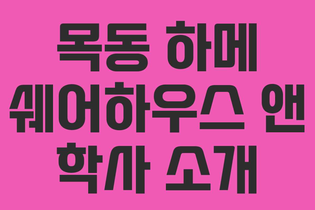목동 하메 쉐어하우스 앤 학사는 겨울 방학 동안 편리하게 거주할 수 있는 최적의 공간입니다. 2022년 12월부터 2023년 2월까지의 단기 거주를 원하는 분들을 위해 준비된 이 쉐어하우스는 다양한 학원과의 근접성 덕분에 학생들에게 매우 유용한 선택지가 될 것입니다.