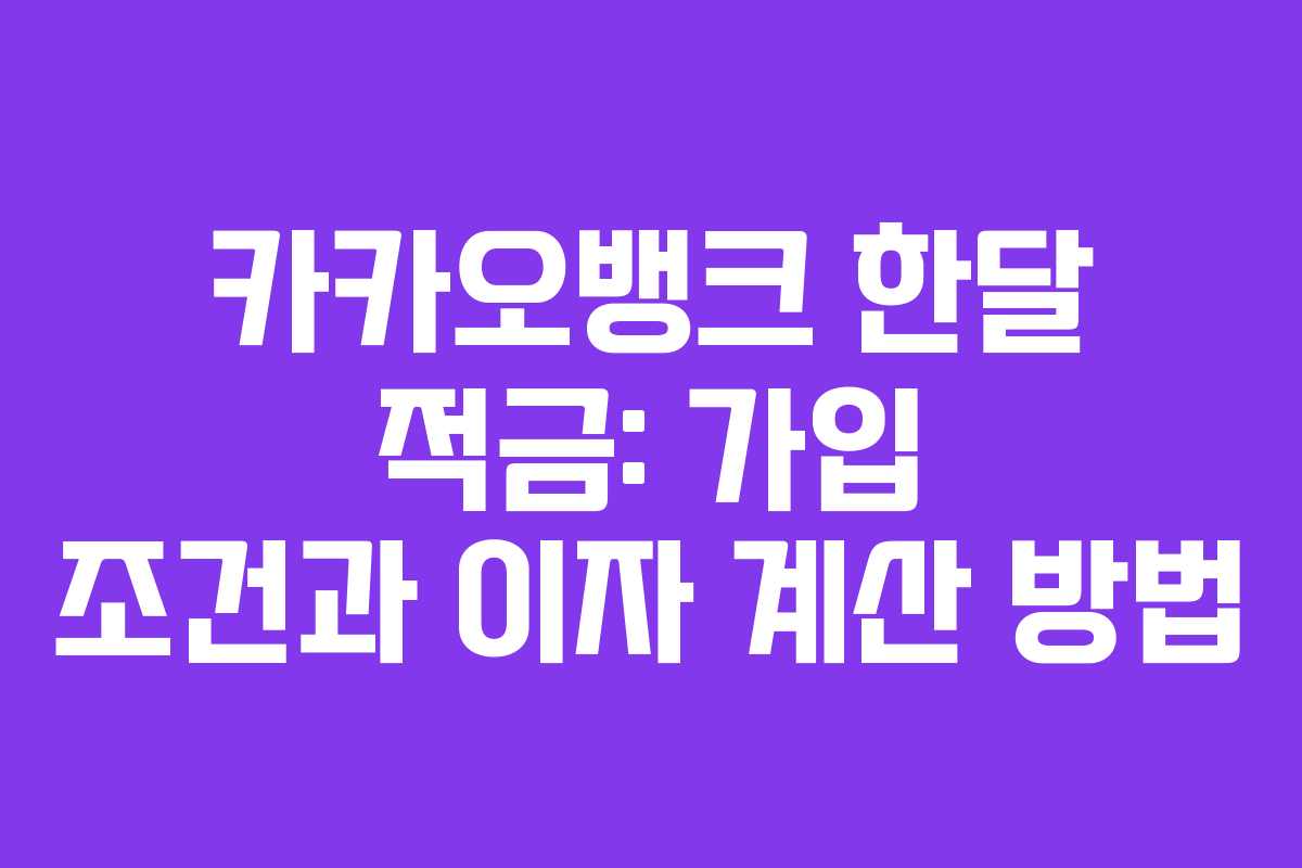 카카오뱅크의 한달 적금은 단기 저축을 원하는 고객들에게 매우 매력적인 상품입니다. 이 적금은 1개월 동안 매일 직접 입금해야 하며, 최대 연 8%의 고금리를 제공합니다. 2026년 기준으로 이 상품의 주요 특징과 가입 방법에 대해 자세히 알아보겠습니다.