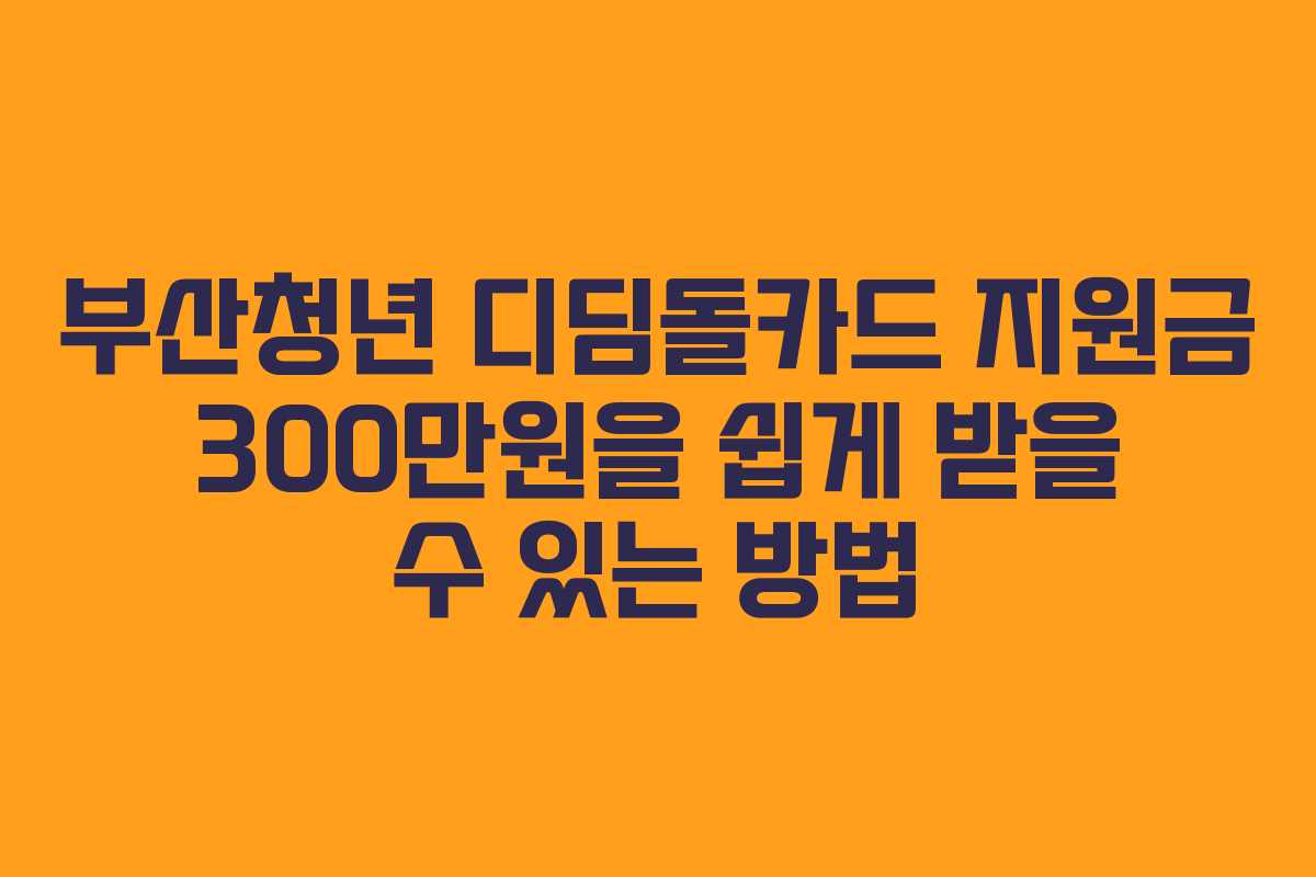 부산청년 디딤돌카드 지원금 300만원을 쉽게 받을 수 있는 방법
