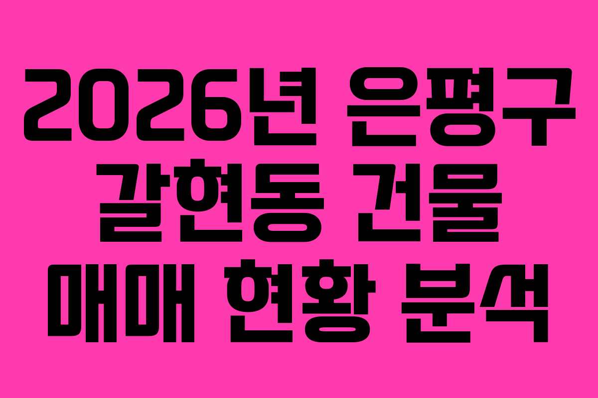 2026년 은평구 갈현동 부동산 현재 상황 및 과거 데이터 보정