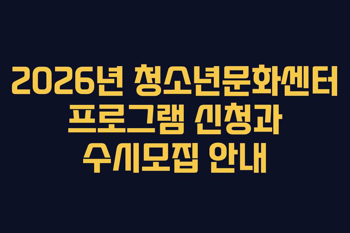 2026년 청소년문화센터의 수시 모집은 매년 정기적으로 진행됩니다. 각 모집 기간에 따라 다양한 프로그램이 마련되어 있으니, 미리 확인하고 신청하는 것이 중요합니다.