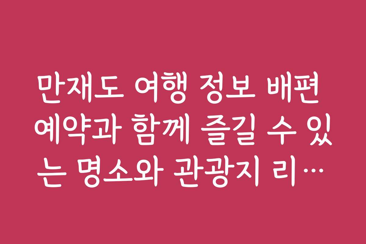 🤔 만재도 여행 정보 배편 예약과 함께 즐길 수 있는 명소와 관광지 리스트에 대해 진짜 궁금한 FAQ