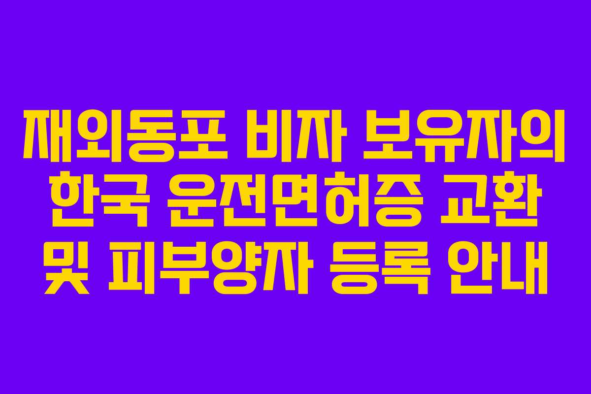 재외동포 비자 소지자들이 한국에서 운전면허증을 교환하고 피부양자로 등록하는 과정은 복잡할 수 있으나, 필요한 절차를 올바르게 이해한다면 큰 어려움 없이 진행할 수 있습니다. 본 글에서는 중국 운전면허증을 한국 운전면허증으로 교환하는 방법과 배우자 및 자녀를 피부양자로 등록하는 방법에 대해 상세히 설명하겠습니다.