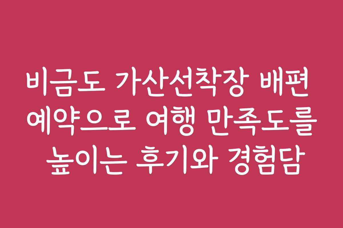 ⚡ 비금도 가산선착장 배편 예약으로 여행 만족도를 높이는 후기와 경험담와 함께 챙겨야 할 필수 연관 혜택 활용법