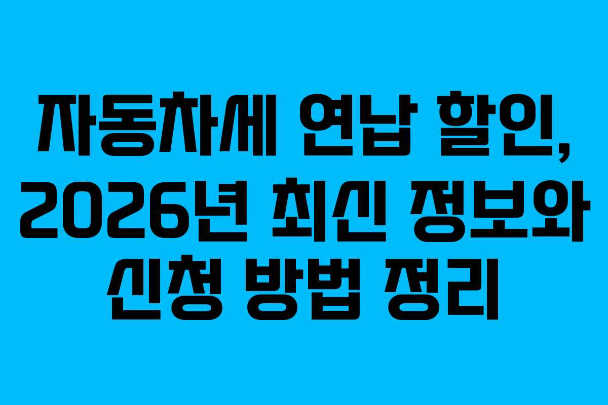 자동차세 연납은 매년 많은 사람들이 놓치기 쉬운 중요한 부분입니다. 특히 2026년에는 자동차세 연납 신청이 진행되는 기간이 정해져 있으며, 이 시기를 놓치면 예상치 못한 손해를 볼 수 있습니다. 지금부터 자동차세 연납 할인에 대한 최신 정보와 신청 방법을 자세히 알아보겠습니다.