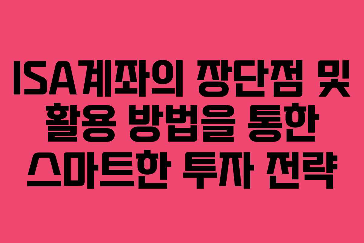ISA계좌의 장단점 및 활용 방법을 통한 스마트한 투자 전략