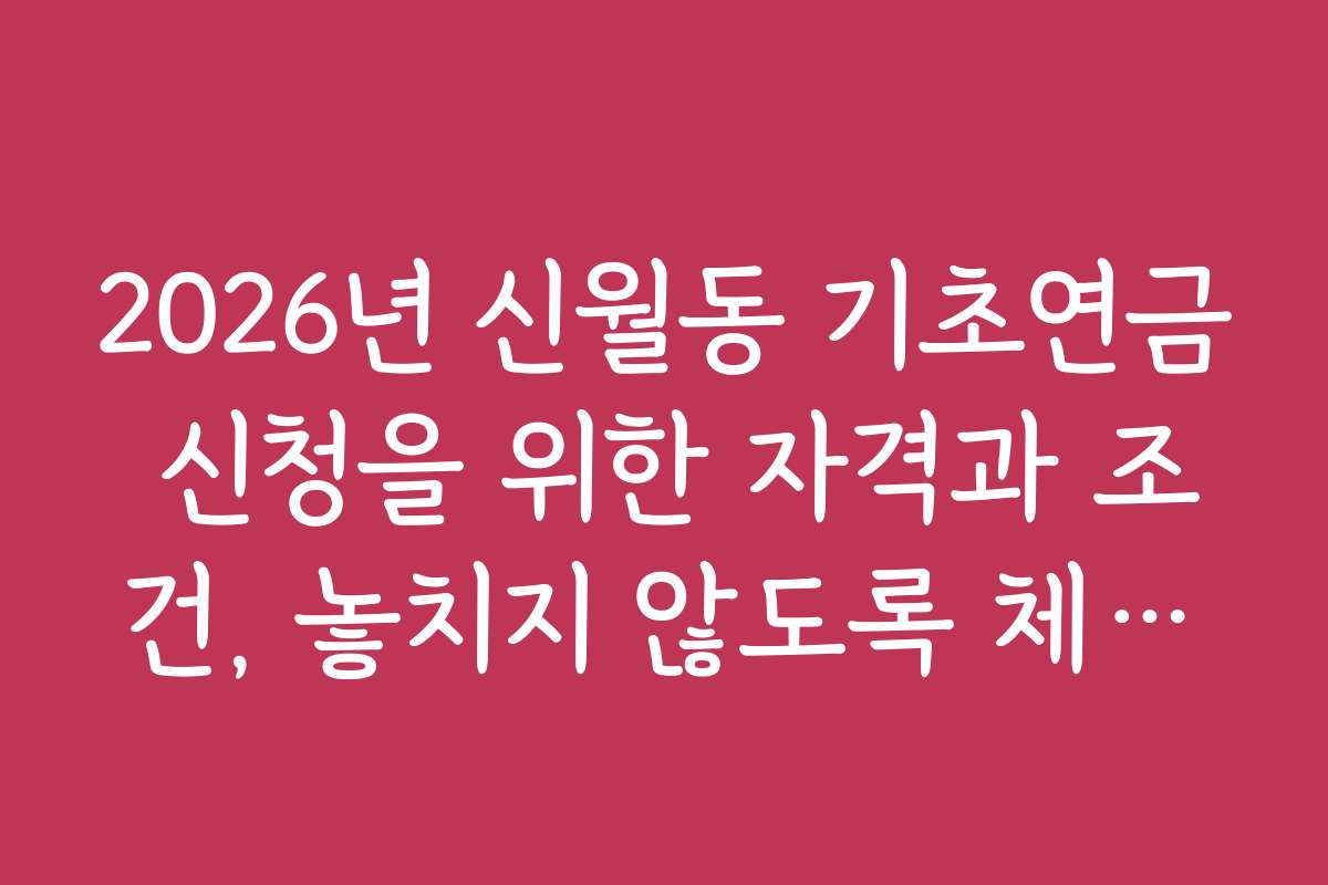 🎯 2026년 신월동 기초연금 신청을 위한 자격과 조건, 놓치지 않도록 체크하세요 최종 점검 및 2026년 일정 관리