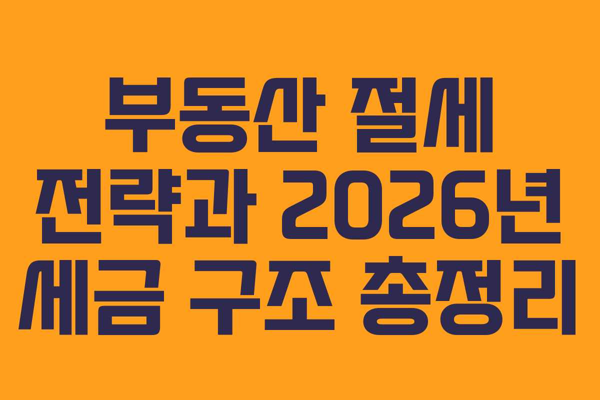 부동산 절세 전략과 2026년 세금 구조 총정리
