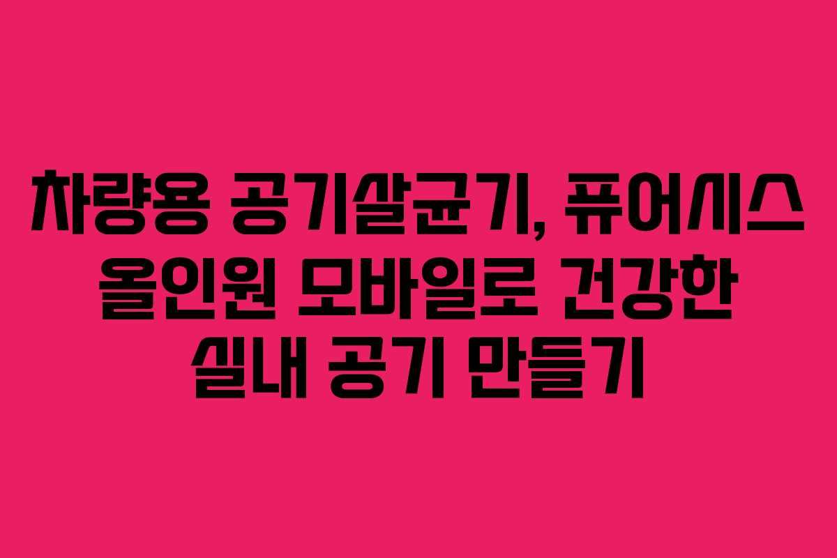차량 내 공기 질 관리의 필요성은 날로 증가하고 있으며, 퓨어시스 올인원 모바일은 그러한 요구를 충족시키기 위한 최적의 선택입니다. 다양한 기능과 성능을 갖춘 이 제품은 차량 내 유해 물질을 효과적으로 제거하고, 건강한 실내 공기를 유지하는 데 큰 도움을 줄 것입니다. 공기 질 개선은 단순히 쾌적함을 넘어, 건강을 지키는 중요한 요소임을 잊지 말아야 합니다.