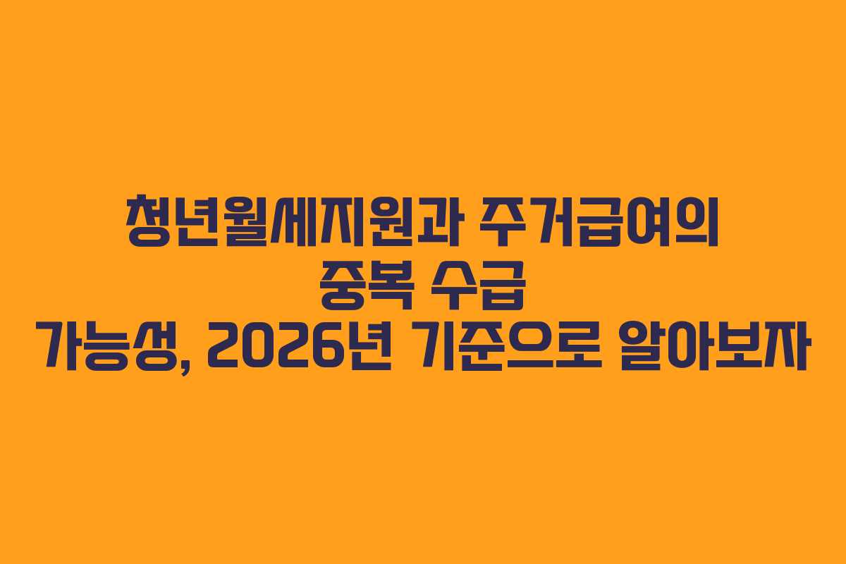 청년들이 주거 안정성을 확보하는 데 있어 청년월세지원과 주거급여는 매우 중요한 제도입니다. 하지만 이러한 두 가지 제도의 중복 수급에 대한 정보는 혼란을 주는 경우가 많습니다. 이번 글에서는 2026년 기준으로 두 제도의 중복 수급 가능성과 조건에 대해 명확하게 정리해 보겠습니다.