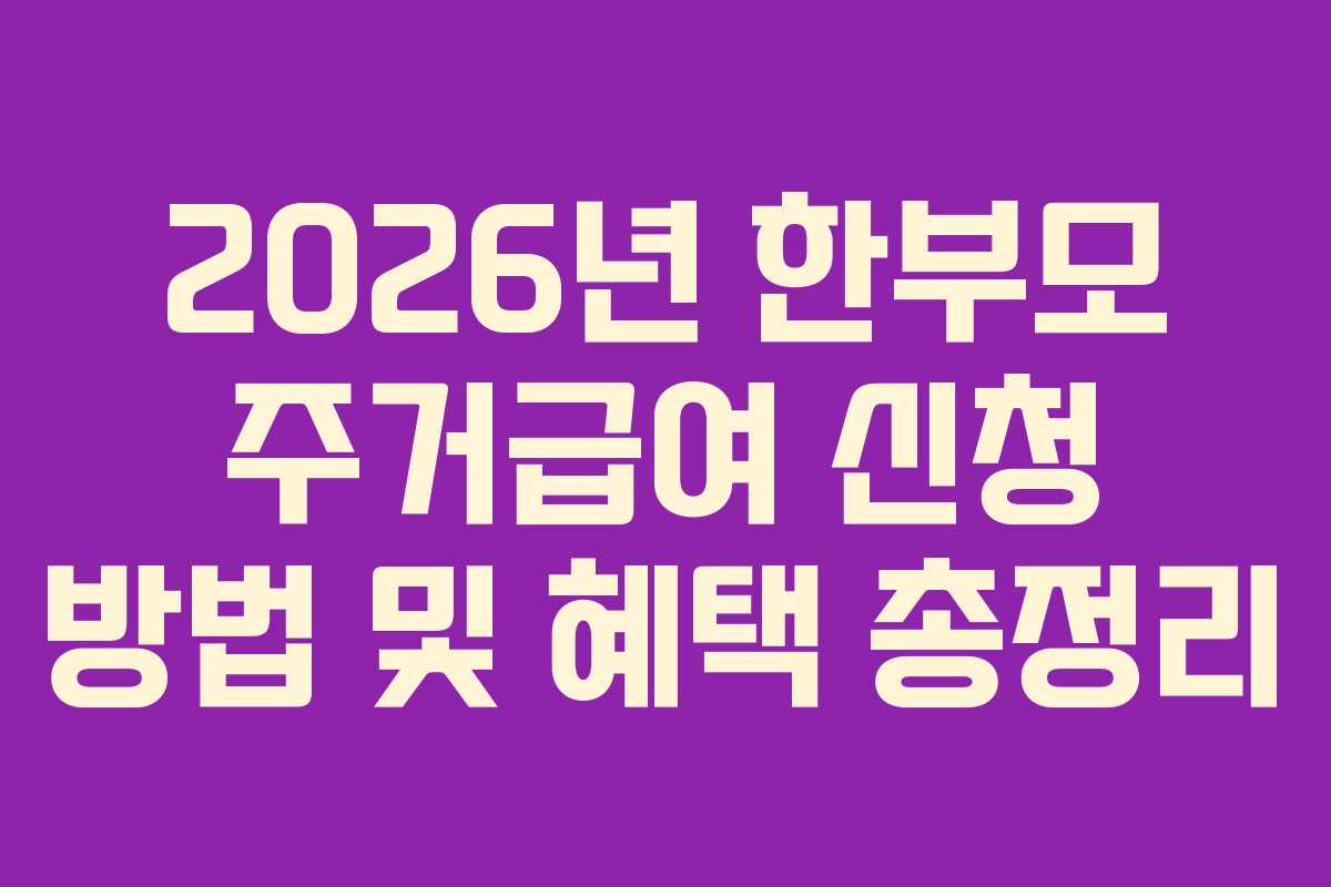 2026년 한부모 주거급여의 현황 및 주요 변경 사항