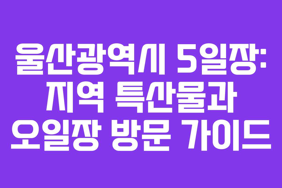 울산의 5일장은 특정 날짜에 열리는 전통적인 시장으로, 각 지역마다 고유의 특산물이 있습니다. 이곳에서 신선한 로컬 특산물과 다양한 먹거리를 저렴한 가격에 구매할 수 있는 기회를 놓치지 않도록 장날 일정을 미리 체크하는 것이 중요합니다. 다음은 울산광역시의 5일장 시장 정보입니다.
