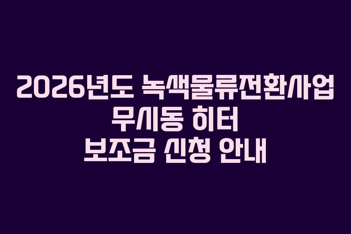 2026년도 녹색물류전환사업의 무시동 히터 보조금 추가선발 결과와 관련된 내용을 안내합니다. 본 사업은 환경을 고려한 물류 시스템으로의 전환을 촉진하기 위해 정부에서 지정한 핵심사업입니다. 아래 내용을 통해 신청 절차와 주의사항을 확인하시기 바랍니다.