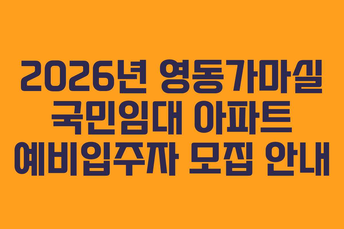 충북 영동군에 위치한 영동가마실 국민임대 아파트의 예비입주자 모집 소식은 주거 안정성을 원하는 많은 이들에게 큰 희망이 될 것입니다. 2026년 3월 25일에 최종 예비입주자 당첨 발표가 예정되어 있으며, 이 기회를 통해 안정적이고 합리적인 주거 환경을 누릴 수 있는 기회가 될 것입니다.