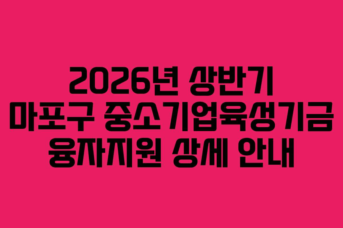 2026년 상반기 마포구에서는 중소기업 및 소상공인을 위한 융자지원 프로그램을 운영합니다. 본 내용은 지원 대상, 조건, 절차 등을 포함하여 예비 신청자들이 필요한 정보를 쉽게 이해할 수 있도록 구성되었습니다.