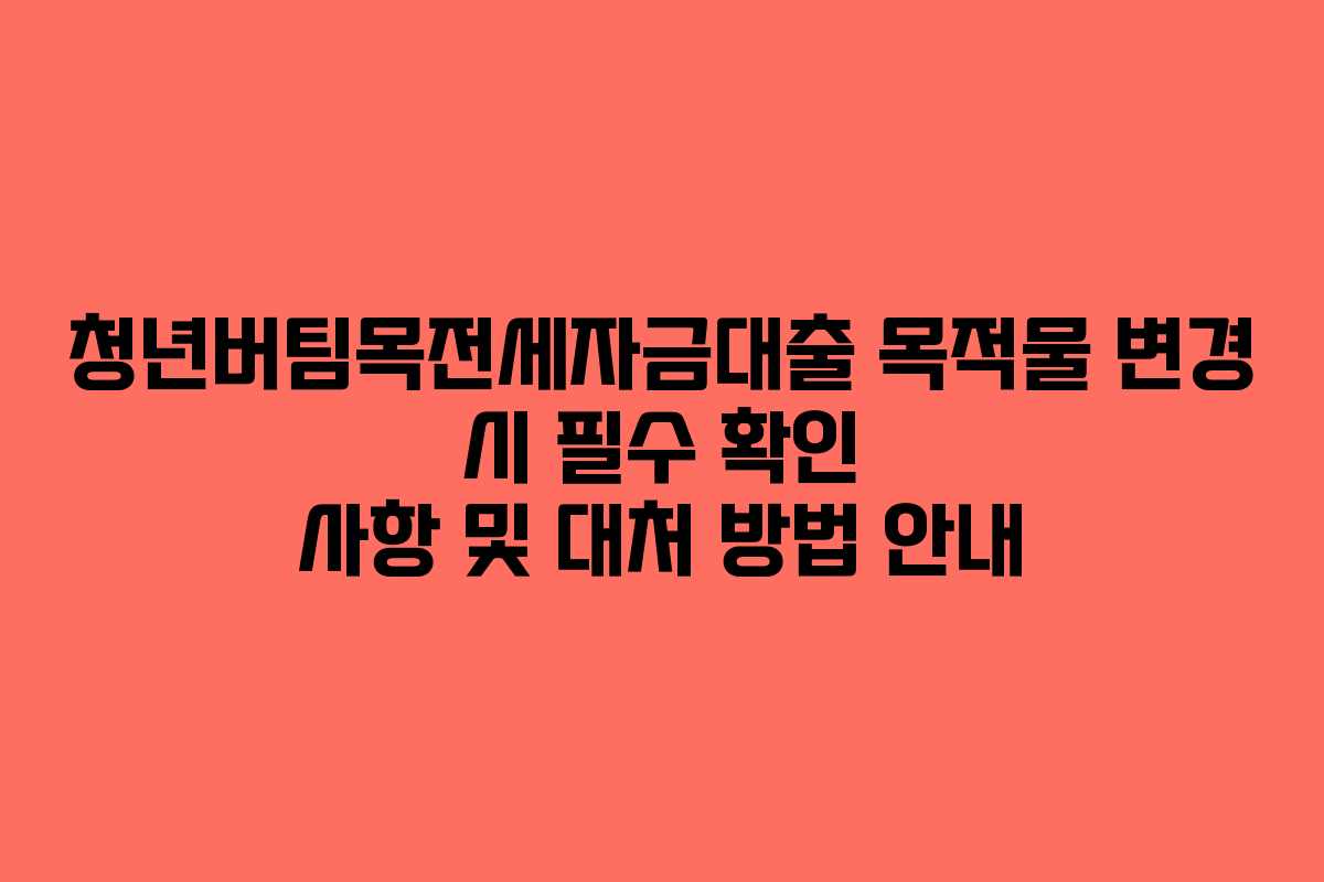 2026년 봄, 많은 이들이 이사 준비로 분주한 때입니다. 특히 청년버팀목전세자금대출을 이용하고 있는 분들은 이사 시 주의해야 할 사항들이 많습니다. HUG 보증을 이용 중인 경우, 대출 목적물 변경에 대한 심사가 까다로울 수 있습니다. 이에 따라 대출이 거절되는 상황을 미연에 방지하기 위한 방법을 살펴보겠습니다. 이 글에서는 목적물 변경이 거절되는 이유와 해결책을 제시하며, 필요한 서류를 정리하여 여러분이 안전하게 이사할 수 있도록 도와드리겠습니다.