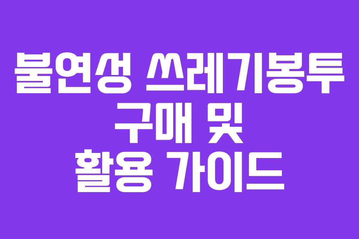 불연성 쓰레기봉투를 구매하기 위해서는 다양한 방법으로 판매처를 확인할 수 있습니다. 각 지자체의 규정에 따라 다소 차이가 있으므로, 신뢰할 수 있는 정보를 얻는 것이 중요합니다.