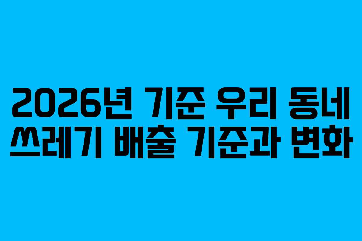 2026년이 다가오면서 우리 동네의 쓰레기 배출 기준이 새롭게 변화하고 있다. 이러한 변화는 청소 행정의 효율성을 높이고, 주민들의 편의를 증대시키기 위한 목적이 있다. 이번 글에서는 2026년 기준으로 쓰레기 배출에 대한 구체적인 사항을 살펴보며, 주민들이 반드시 알아야 할 정보들을 제시하겠다.