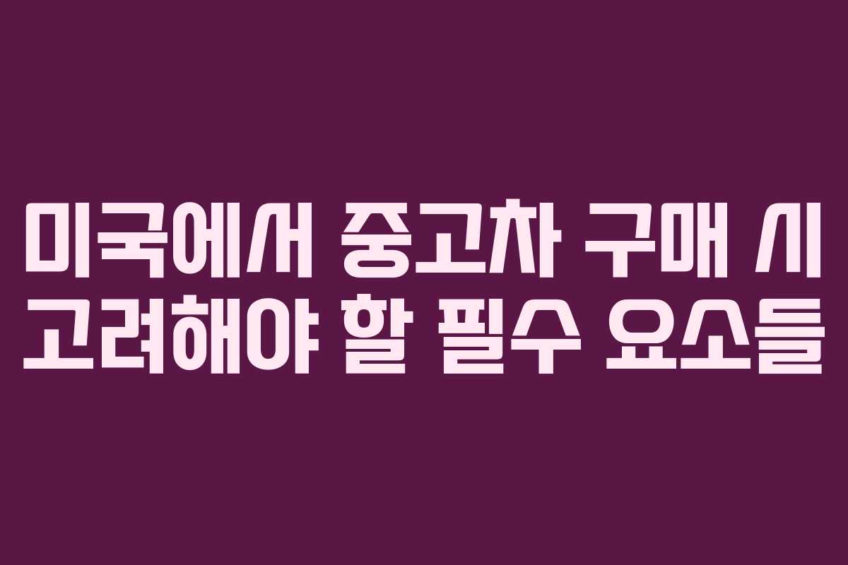 미국에서 중고차 구매 시 고려해야 할 필수 요소들