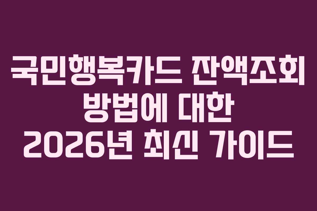 국민행복카드는 정부의 다양한 임신과 출산 관련 지원을 받기 위한 필수 도구입니다. 이 카드를 통해 임신진료비, 육아 바우처 등 여러 혜택을 누릴 수 있습니다. 본 가이드는 2026년 기준으로 국민행복카드의 잔액 조회 방법을 상세히 안내합니다.