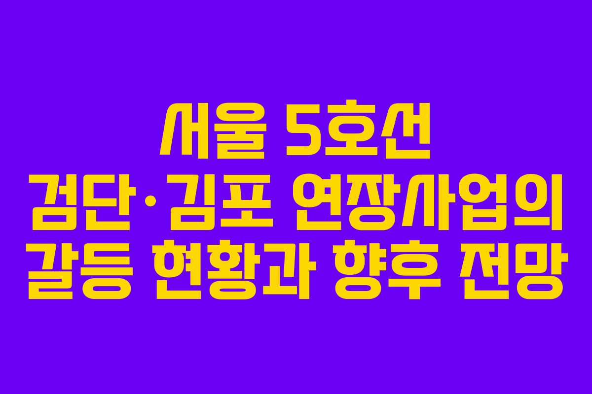 서울 5호선의 검단·김포 연장사업은 현재 심각한 갈등을 겪고 있으며, 이로 인해 각 지역의 정치 및 주민 단체 간의 신경전이 격화되고 있는 상황이다. 2026년 기준으로 이 사업은 더욱 중요한 전환점을 맞이할 예정이다. 본 글에서는 현 상황을 진단하고, 앞으로의 방향성을 제시하고자 한다.