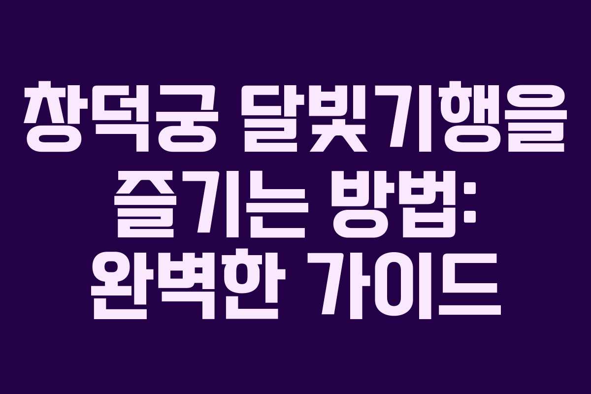 이 가이드를 참고하여 창덕궁의 밤을 만끽하며 특별한 추억을 만들어 보세요.