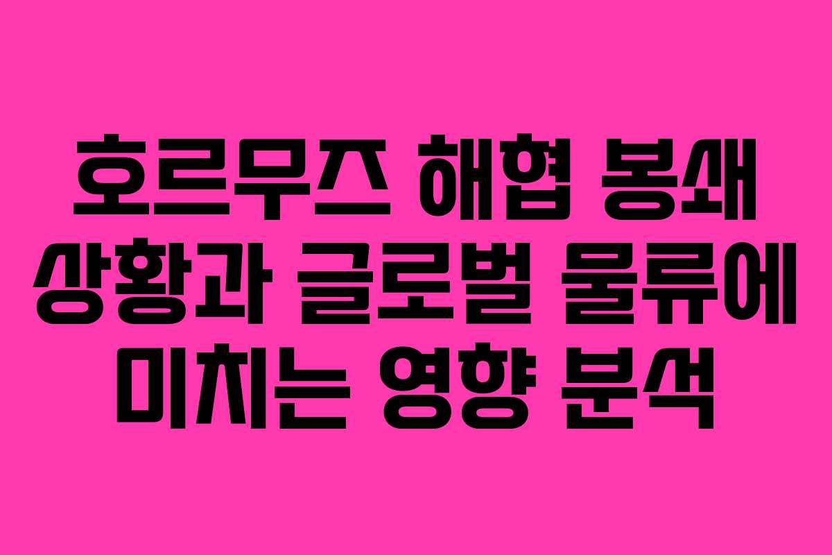 호르무즈 해협 봉쇄로 어떤 영향이 예상되나요?