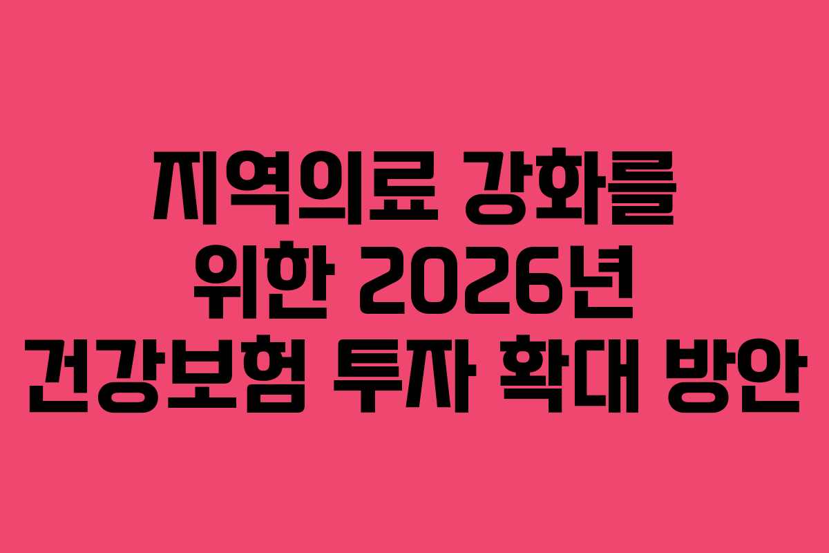 지역의료 강화를 위한 2026년 건강보험 투자 확대 방안
