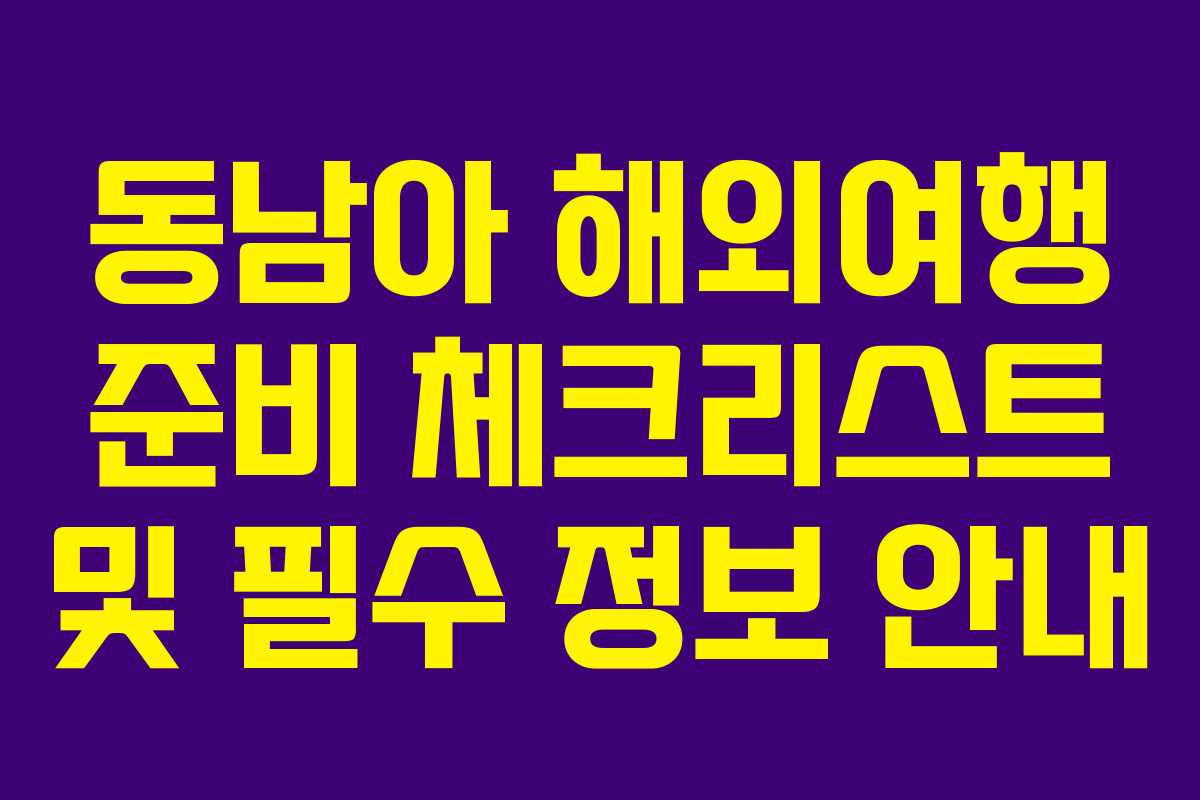 동남아 해외여행 준비 체크리스트 및 필수 정보 안내