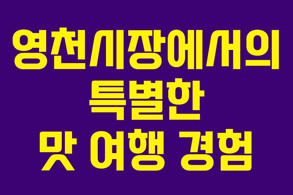 영천시장은 다양한 먹거리를 통해 여행의 즐거움을 더해주는 장소입니다. 특히, 고경식육점에서의 수육은 방문할 가치가 충분합니다. 여행 중 현지의 맛을 느끼고 싶다면 영천시장을 꼭 방문해보세요. 다양한 경험을 통해 여행의 즐거움을 만끽할 수 있습니다.