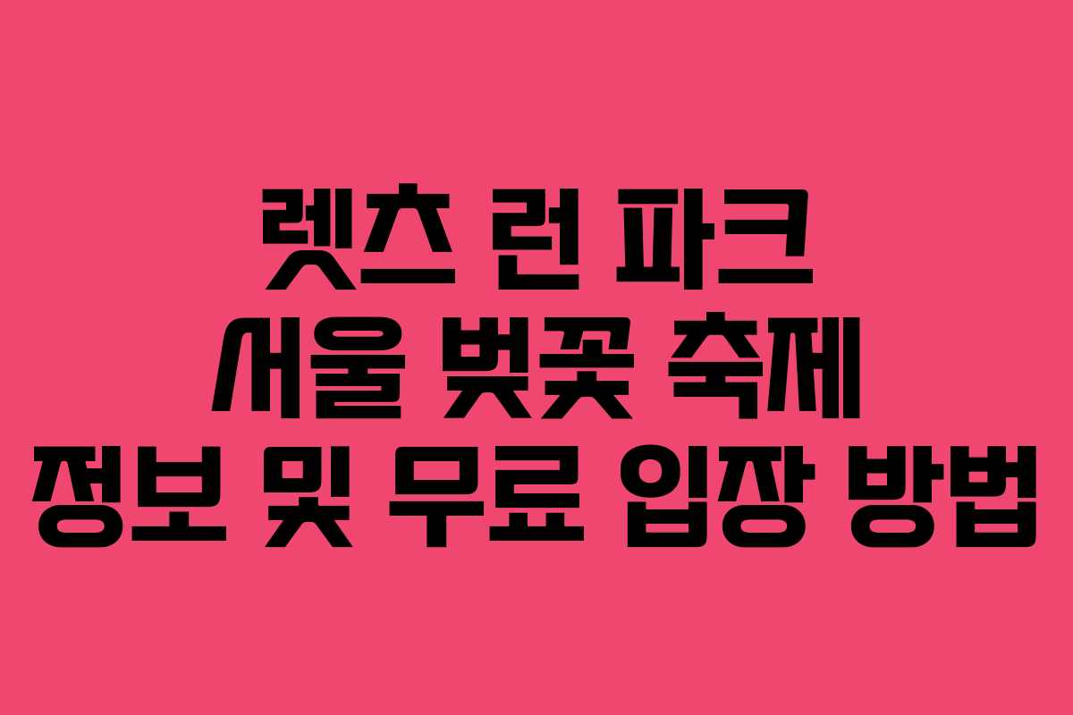 렛츠 런 파크 서울 벚꽃 축제 정보 및 무료 입장 방법