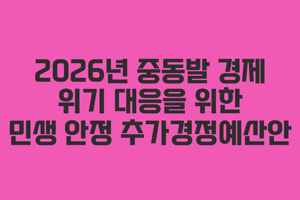 2026년 3월, 중동 지역의 갈등으로 인한 경제적 충격이 대한민국에도 영향을 미치고 있다. 이에 정부와 더불어민주당은 25조 원 규모의 ‘민생 안정 추가경정예산안’을 편성하여 민생을 지원하고 경제적 불확실성에 대응하기로 했다. 이번 예산안의 핵심 내용과 지급 방식, 그리고 향후 일정에 대해 자세히 알아보자.