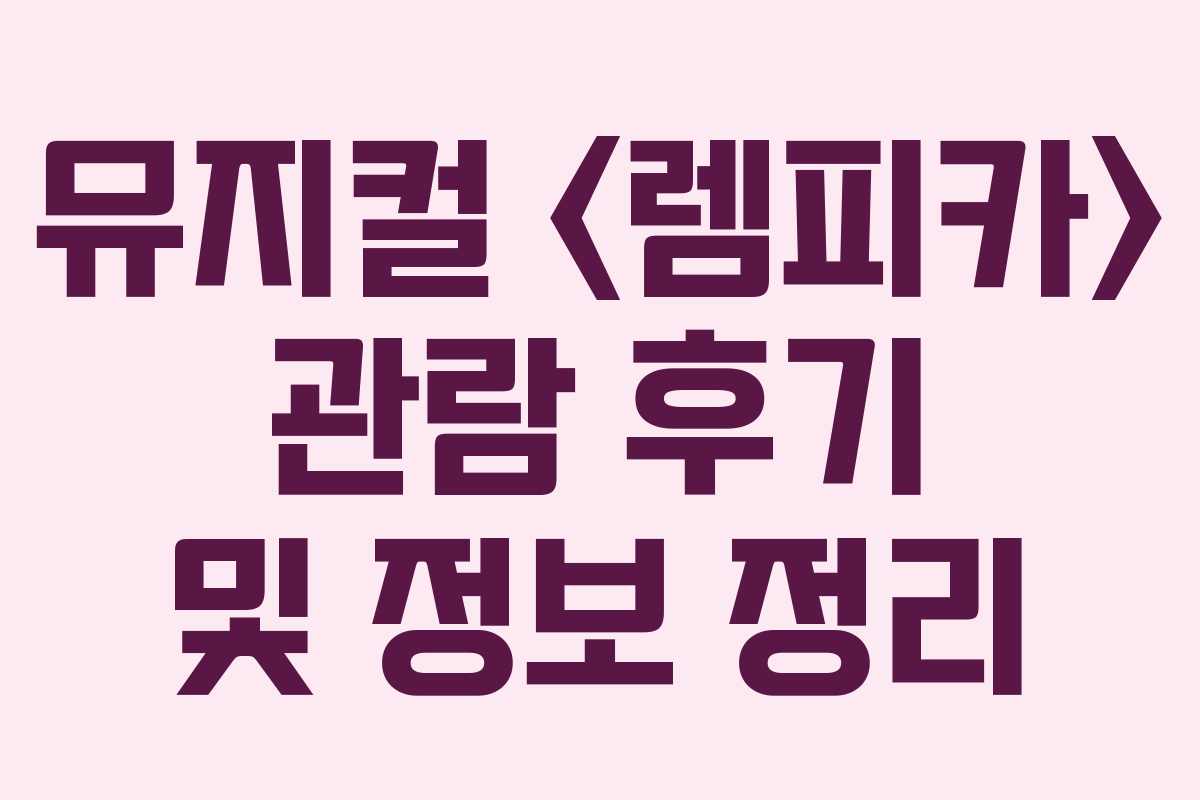2026년 상반기 뮤지컬 <렘피카>는 많은 이들의 관심을 끌며 뜨거운 화제를 모으고 있습니다. 타마라 드 렘피카의 삶을 다룬 이번 작품은 관객에게 시각적, 청각적으로 압도적인 경험을 선사합니다. 이번 후기는 캐스팅, 좌석 배치, 주차 정보 등을 포함하여, 관람을 고민하는 분들에게 많은 도움이 될 것입니다.