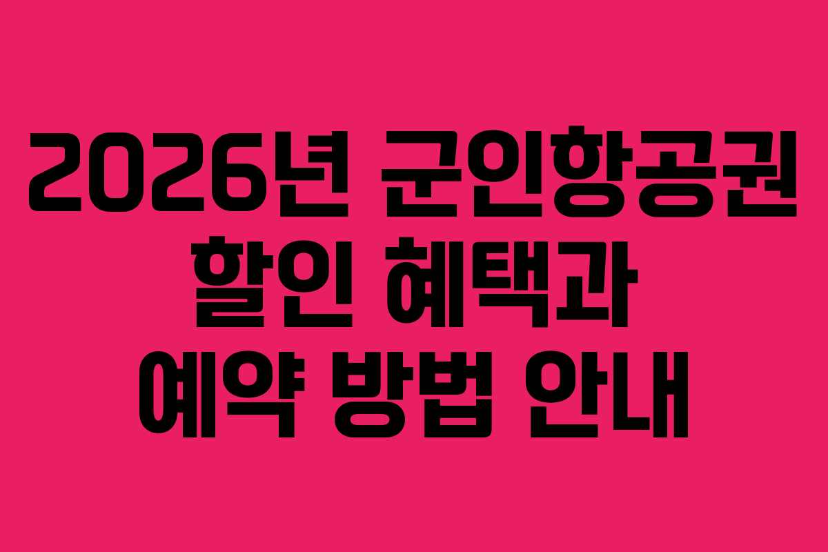 2026년 군인항공권 할인 혜택과 예약 방법 안내