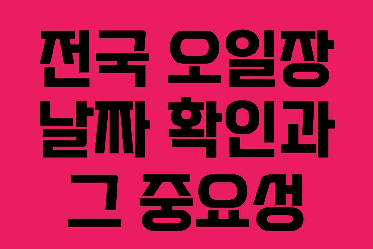 전국 오일장 날짜는 지역 주민과 방문객에게 매우 의미 있는 생활 및 관광 정보로 자리잡고 있습니다. 오일장 방문을 통해 지역 경제와 문화를 이해하고, 함께 소통할 수 있는 기회를 만들어보는 것이 중요합니다.