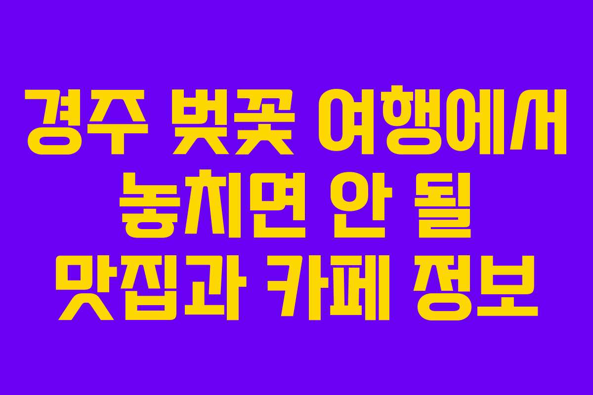 경주 벚꽃 여행은 단순히 꽃 구경에 그치지 않습니다. 맛있는 음식과 커피 한 잔이 더해지면 여행의 만족도가 두 배로 증가합니다. 이번 경주 벚꽃 시즌에 소개한 맛집과 카페 리스트를 참고하여 더욱 특별한 여행을 즐겨보세요.