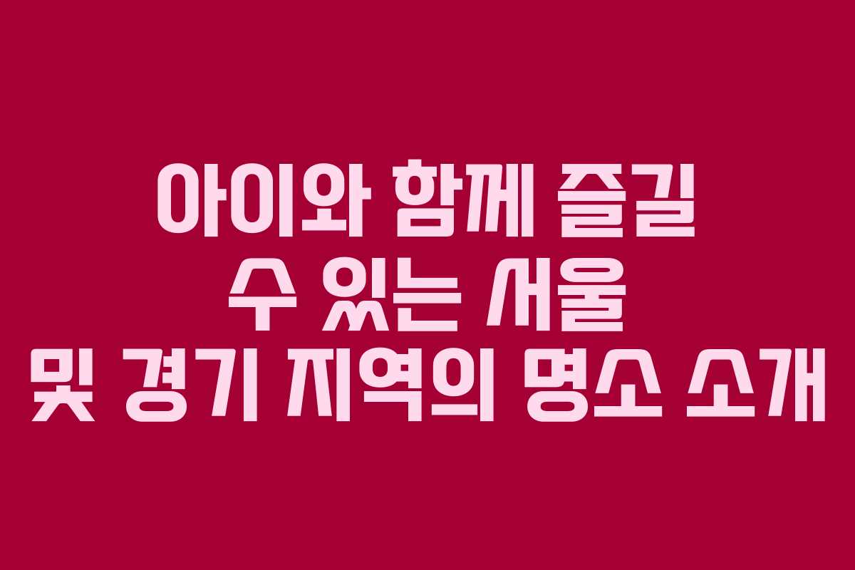 이처럼 서울 및 경기 지역에는 가족과 함께 즐길 수 있는 다양한 명소가 있습니다. 각 장소의 특색과 팁을 활용하여 즐거운 나들이를 계획해보세요.