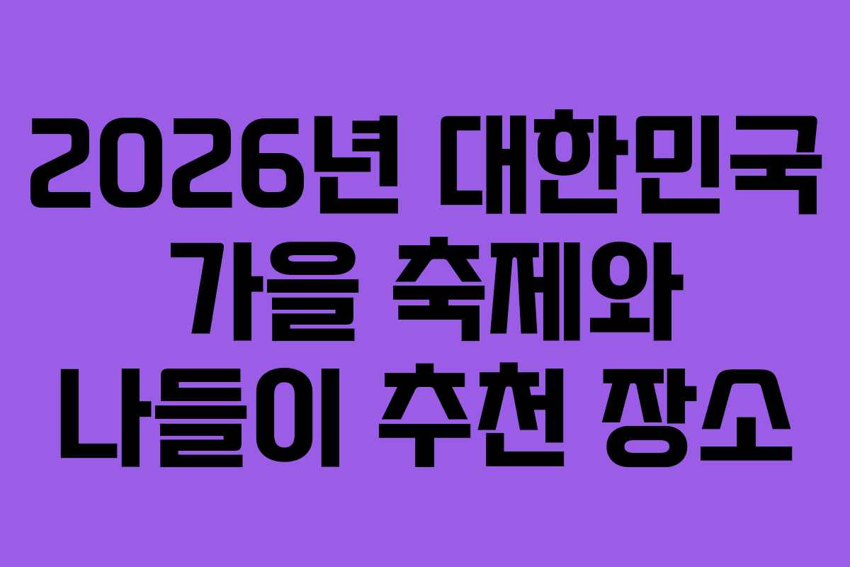 2026년 대한민국 가을 축제와 나들이 추천 장소