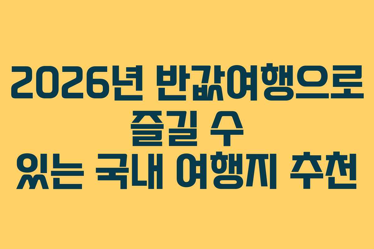 2026년에는 국내 여행이 인기를 끌 것으로 보입니다. 특히 유류비 인상으로 인해 항공비가 증가하면서 많은 이들이 국내 여행을 선택할 것으로 예상됩니다. 문화체육관광부가 주관하는 지역사랑 휴가지원 프로그램, 즉 반값여행이 시행되며 특정 지역 여행 시 경비의 절반을 환급받을 수 있는 기회가 주어지니, 이를 통해 알찬 여행을 계획해 보시기 바랍니다.
