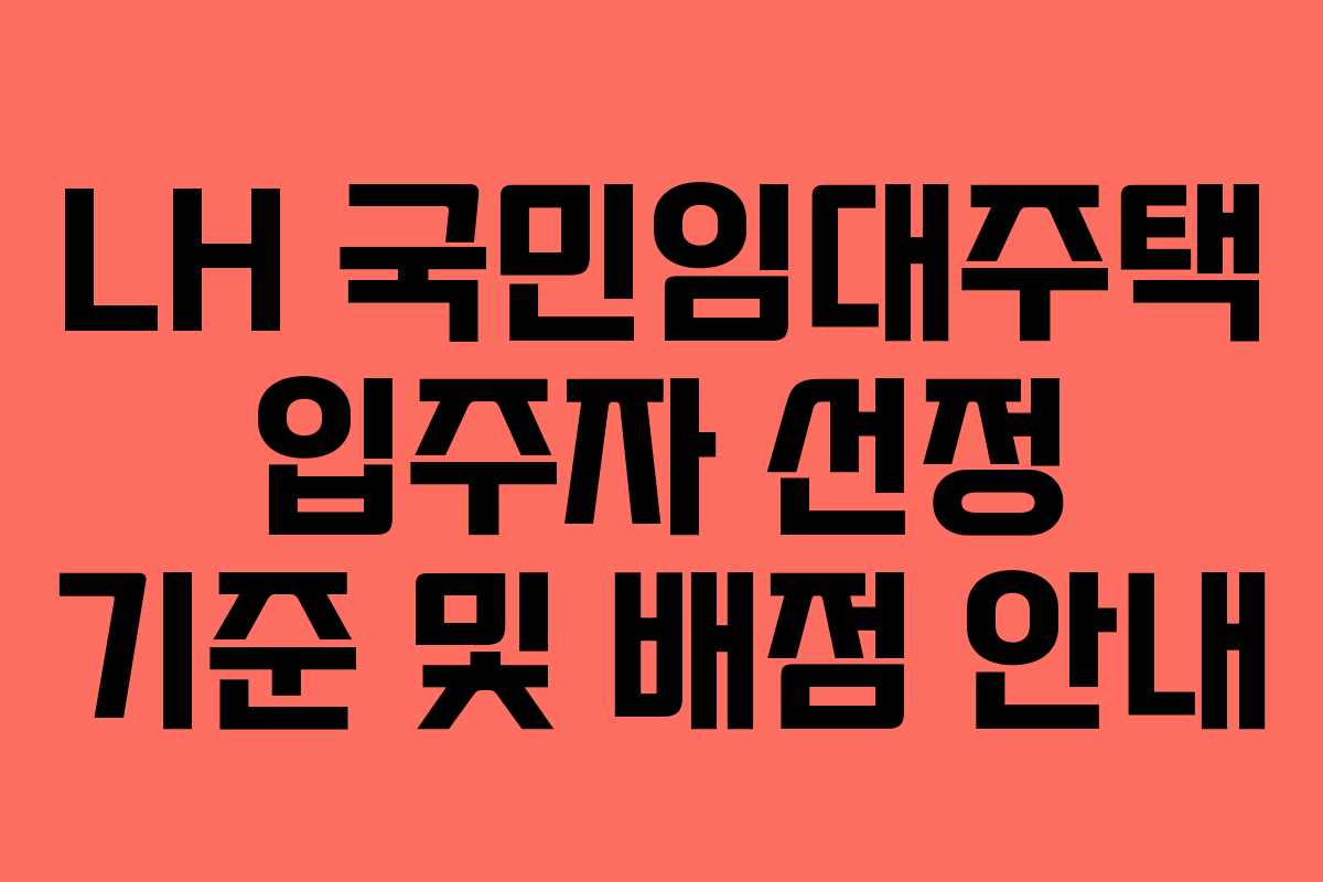 이처럼 국민임대주택의 입주자 선정 기준은 주거 안정성을 위한 체계적인 접근을 반영하고 있습니다.