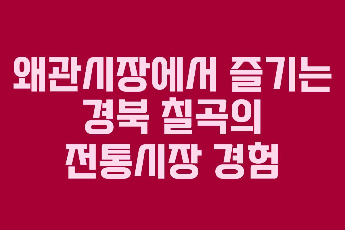 왜관시장은 경북 칠곡에서 자랑하는 전통시장으로, 매력적인 오일장과 상설시장이 함께 운영되고 있습니다. 이곳을 방문하기 전에 오일장 날짜와 다양한 서비스, 그리고 주변 관광지에 대한 정보를 충분히 알고 가면 보다 알찬 여행이 될 것입니다. 특히, 왜관시장에서 제공하는 특산물과 먹거리는 놓치면 후회할 경험이 될 것입니다.