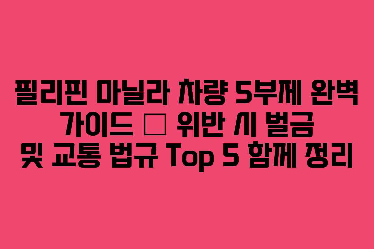 필리핀 마닐라 차량 5부제 완벽 가이드 – 위반 시 벌금 및 교통 법규 Top 5 함께 정리