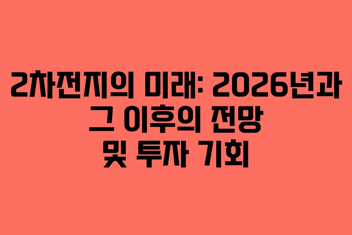 2026년은 2차전지 산업의 중요한 전환점이 될 것입니다. 전고체 배터리의 상용화와 ESS 시장의 성장은 이 산업의 성장 가능성을 높이는 요소입니다. 한국 기업들이 글로벌 시장에서의 경쟁력을 유지할 수 있는 기회를 잘 활용한다면, 향후 10년 동안 긍정적인 성장을 지속할 것으로 보입니다. 현재의 변화와 혁신을 주의 깊게 살펴보며, 전략적인 투자 계획을 세우는 것이 중요합니다. 2차전지 산업은 지금이야말로 투자 적기라 할 수 있습니다.